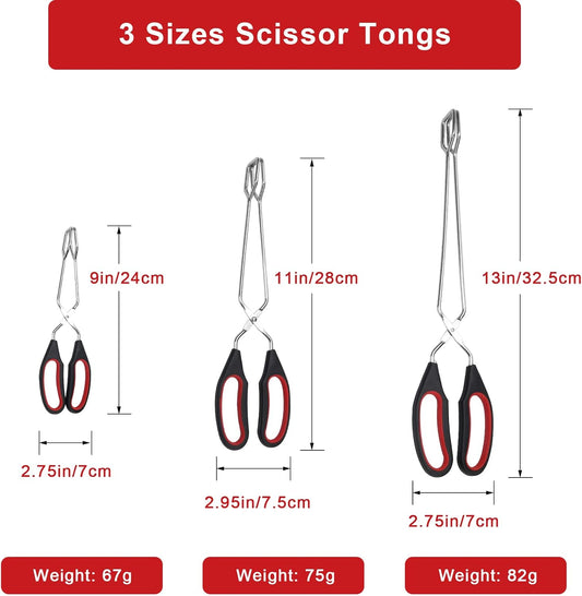 Coitak 3 Pack Scissor Tongs Cooking Stainless Steel Food Tongs Barbecue Grilling Tongs for Flipping Food Tool, 9/11/13 Inch