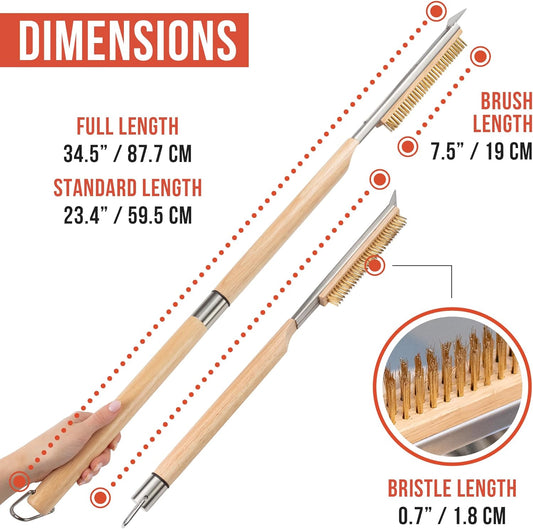 Chef Pomodoro Pizza Oven Brush with Scraper - Adjustable Handle (55cm to 87.7cm), Pizza Stone Brush, Pizza Oven Cleaning Brush, Outdoor Pizza Oven Accessories for Pizza Stones, BBQ Grill, and Ovens