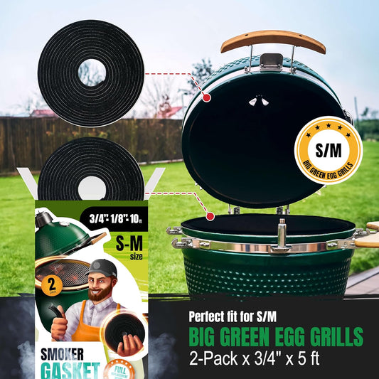 Gasket for Big Green Egg S-M - 2-Pack x 5 FT Smoker Gasket Seal - BGE Gasket 3/4" x 1/8" Felt - Compatible with Big Green Egg - Accessories & Parts for Grill by Smoker Chef