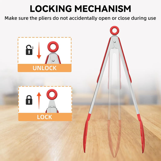 NileHome Tongs for Cooking, Professional Stainless Steel Cooking Tongs – Heat-Resistant for Grilling, BBQ, Serving Salad, Pasta, and Kitchen Use, Dishwasher Safe, Set of 7" 9" 12", Red