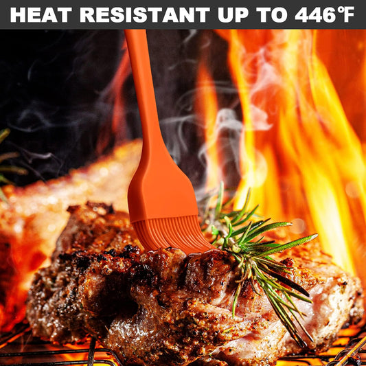 Anaeat Silicone Basting Pastry Brush- 2 Pack Heat Resistant Brushes with Soft Bristles, Hygienic Seamless Design, Marinade Brush Great in Baking for Spreading Oil Butter Sauce BBQ Grill (Orange)