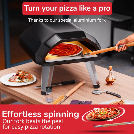 Pizza Turner Fork & Bubble Popper - Easy Pizza Rotation for Evenly Baked Crust - Adjustable Handle [26"-32”]