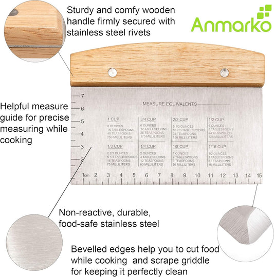 Dough Cutter for Bread and Pizza Dough - Stainless Steel Metal Griddle Scraper Chopper - Multipurpose Bench Scraper Kitchen Utensil for Flat Top Griddle - Commercial Quality