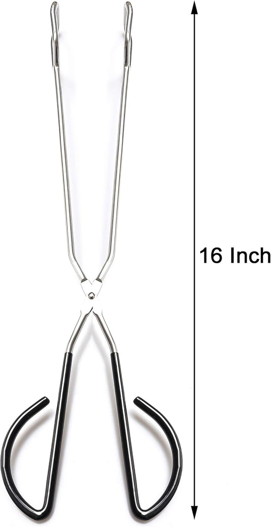 16 Inch Extra Long Stainless Steel Kitchen Scissor Tongs, Non-Slip Comfortable Red Grip, Heat Resistant for BBQ and Cooking