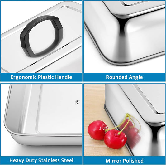 HaSteeL Rectangular Basting Cover, Stainless Steel Cheese Melting Dome Steaming Cover Lid, Heavy Duty Griddle Grill Accessories for Flat Top Teppanyaki BBQ Kitchen Indoor & Outdoor, Dishwasher Safe