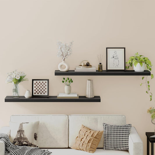 HOOBRO Floating Shelves for Wall, Wall Mounted Shelf Set of 2, 55" Hanging Shelf with Invisible Brackets, for Wall in Bathroom, Bedroom, Toilet, Kitchen, Living Room, Office, Black BK140BJP201