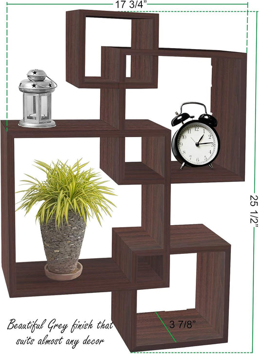 Greenco 4 Cube Intersecting, Easy-to-Assemble Floating Wall Mount Shelves for Bedrooms and Living Rooms - Walls Shelving for Living Room - Wall Mounted Shelves - Espresso Finish