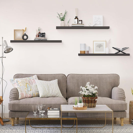 Colima Floating Shelves for Wall Brown Wood Shelf for Bedroom, 36 Inch Wall Mounted Floating Shelves for Bathroom Living Room Kitchen Office, 1.3" Thick Floating Book Shelves Set of 3