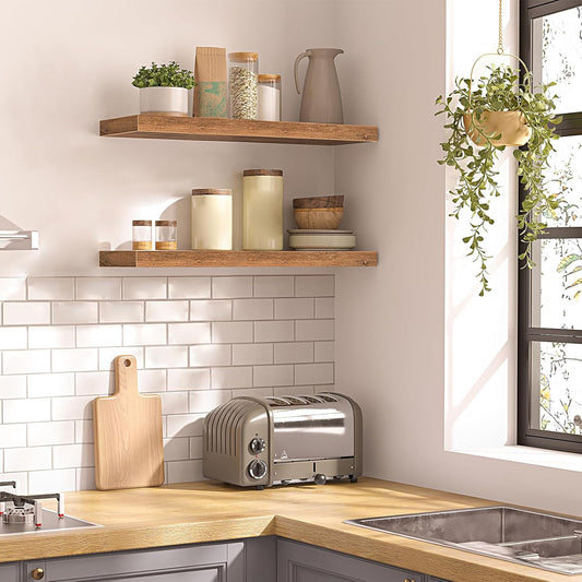 Colima 24" Modern Wood Floating Shelves, 2-Pack, 1.3" Thick, Wall Mounted, 50 lbs Capacity, Bedroom, Bathroom, Kitchen