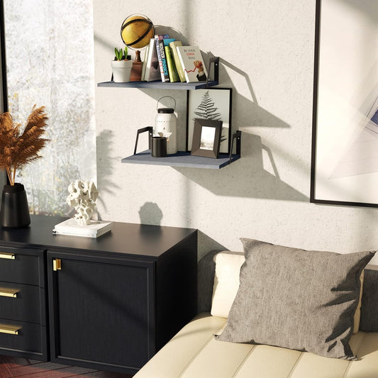 SRIWATANA Floating Shelves Wall Mounted Set of 2 Rustic Wood Shelves with Large Capacity(Weathered Gray)