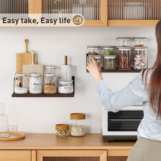 SRIWATANA Floating Shelves Wall Mounted Set of 2 Rustic Wood Shelves with Large Capacity(Dark Walnut)