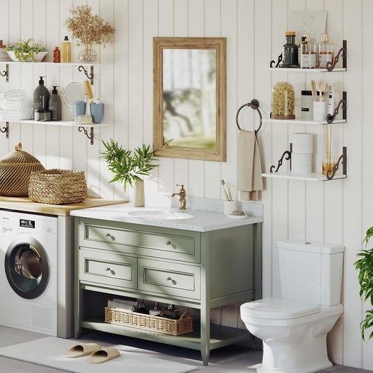 DINZI LVJ Long Wall Shelves, 39.4" Wall Mounted Shelves Set of 4, Wide Floating Shelf with Metal Brackets, for Living Room, Bathroom, Bedroom, Kitchen, Office, White and Gold