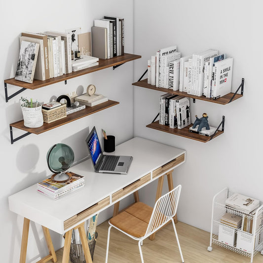 Wood Floating Shelves for Wall, Wooden Wall Shelves for Bedroom, Wall Mounted Shelves for Living Room, Set of 4 Brown 24 Inch