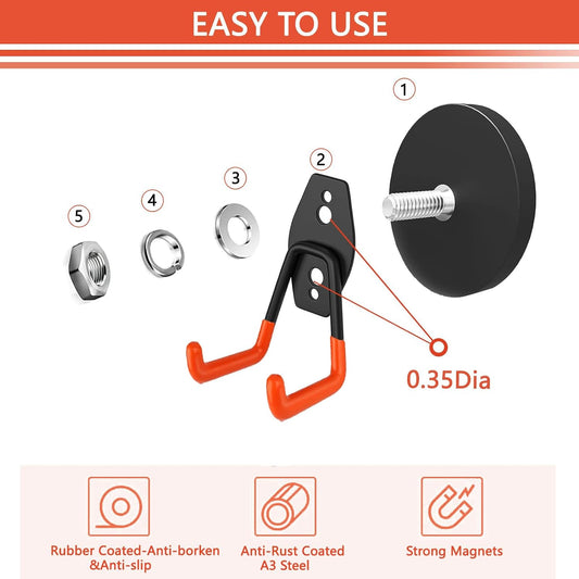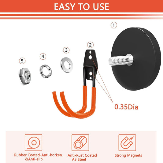 Heavy Duty Magnetic Garage Hook,4 Pack Strong Large Magnet Hooks for Power Drill,Garden Tools,Hose,Pegboard,Garage, Workshop,Magnetic Storage Hooks for Indoor Outdoor Hanging(Orange)