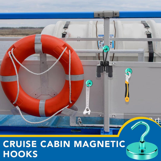 LOVIMAG Magnetic Hooks for Cruise Cabins, 150Lbs Cruise Magnets, Green Magnetic Hooks Heavy Duty for Hanging, Refrigerator, Grill-4 Pack