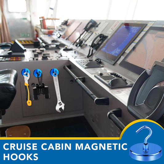 LOVIMAG Cruise Essentials, 40Lbs Blue Cruise Magnets, Magnet Hooks for Cruise Cabin,Strong Magnetic Hooks for Hanging Cruise Lanyard, Fridge, Ceiling, 6 Pack