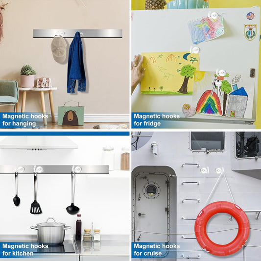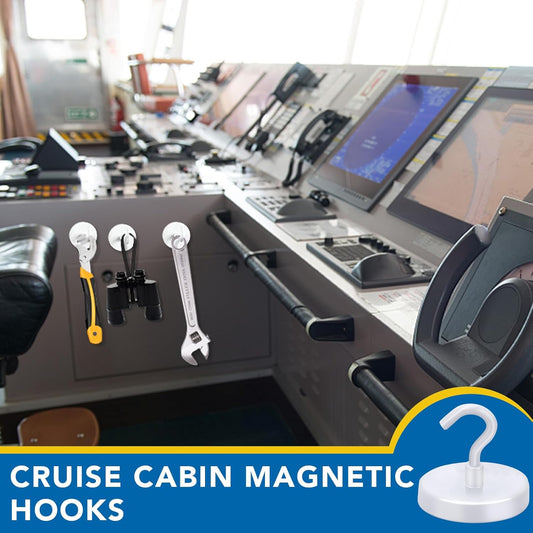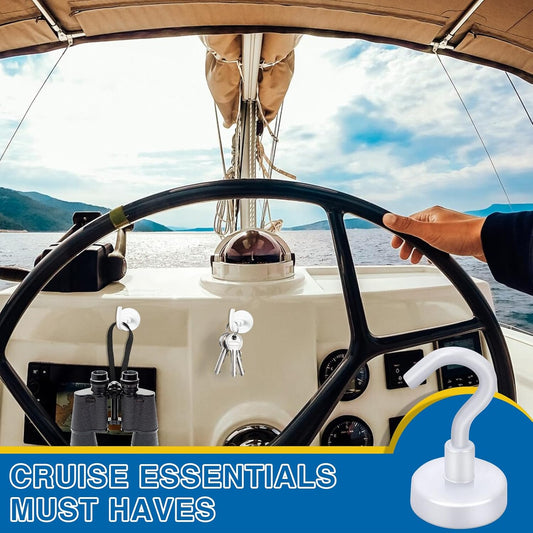 LOVIMAG Magnetic Hooks for Cruise Cabins, 150Lbs Cruise Magnets, White Magnetic Hooks Heavy Duty for Hanging, Refrigerator, Grill-4 Pack