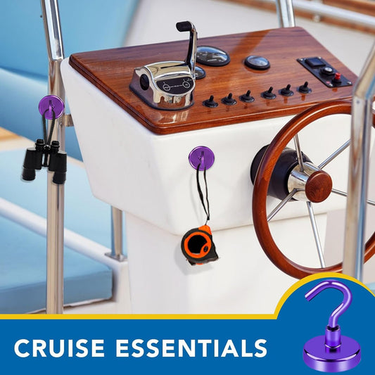 LOVIMAG Cruise Ship Essentials, 110Lbs Cruise Door Magnets, Purple Cruise Magnetic Hooks, Magnetic Hooks Heavy Duty for Hanging Celling, Grill, Refrigerator Kitchen-6 Pack