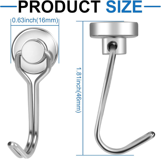 BAVITE Swivel Swing Magnetic Hooks New Upgraded, Refrigerator Magnet Hook,Strong Neodymium Magnets, Perfect for Refrigerator and Other Surfaces, Silver 30lb 12pack