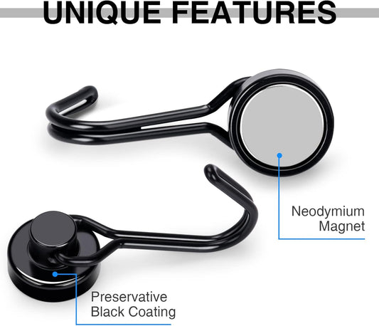 Magnetic Hooks Coat Magnet Hooks for Hanging,Magnetic Hooks Heavy Duty with Rare Earth Neodymium for Pot Holder,Grill,Refrigerator,Home,Kitchen,Workplace or Office.Pack of 2,Black