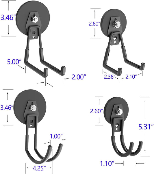 Heavy Duty Magnetic Hooks - Anti-Slide Garage Hanger, Magnetic Mounting for Garden Tools, Hose, Power Drill, Steel Pegboard, Workshop (8 Pack)