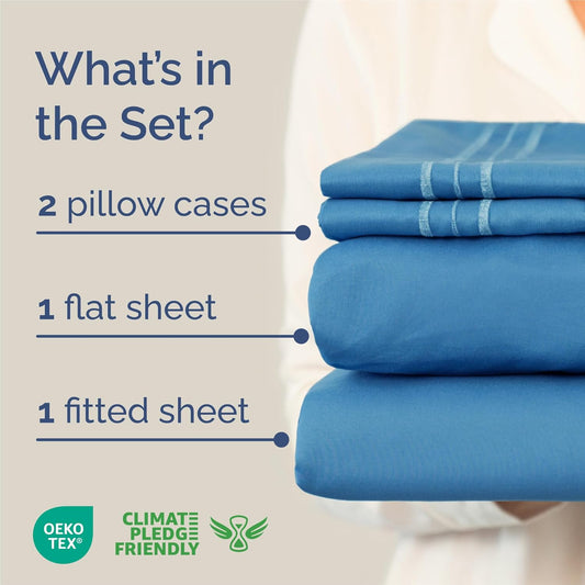 King Size 4 Piece Sheet Set - Comfy Breathable & Cooling Bed Sheets Set - Hotel Luxury Bedding for Women, Men, Kids, Teens, Boys & Girls - Deep Pockets, Soft and Wrinkle Free - Oeko-Tex - Steel Blue