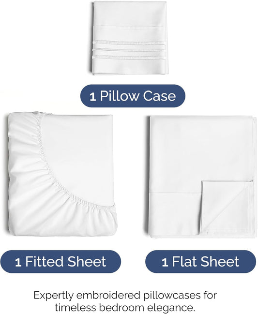 Twin XL Size 3 Piece Sheet Set - Comfy Breathable & Cooling Bed Sheets Set - Hotel Luxury Bedding for Women, Men, Kids, Teens, Boys & Girls - Deep Pockets, Ultra-Soft, Wrinkle Free - Oeko-Tex - White