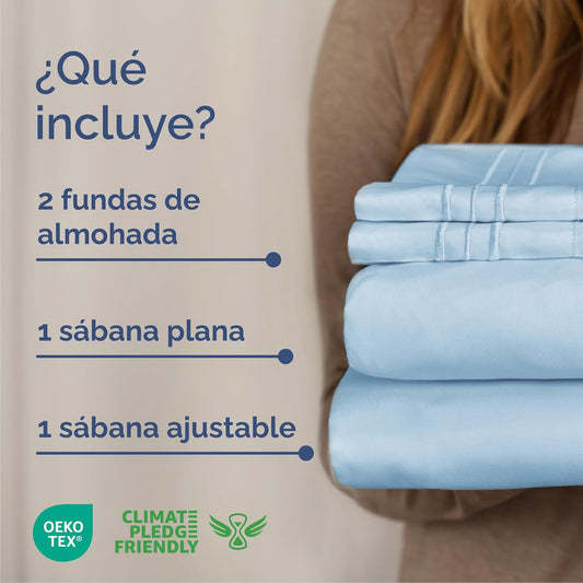 Cal King Size 4 Piece Sheet Set - Comfy Breathable & Cooling Bed Sheets Set - Hotel Luxury Bedding for Women, Men, Kids, Teens, Boys & Girls - Deep Pockets, Soft, Wrinkle Free - Oeko-Tex - Light Blue