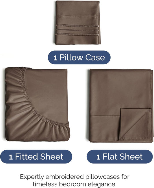 Twin XL Size 3 Piece Sheet Set - Comfy Breathable & Cooling Bed Sheets Set - Hotel Luxury Bedding for Women, Men, Kids, Teens, Boys & Girls - Deep Pockets, Ultra-Soft, Wrinkle Free - Oeko-Tex - Brown