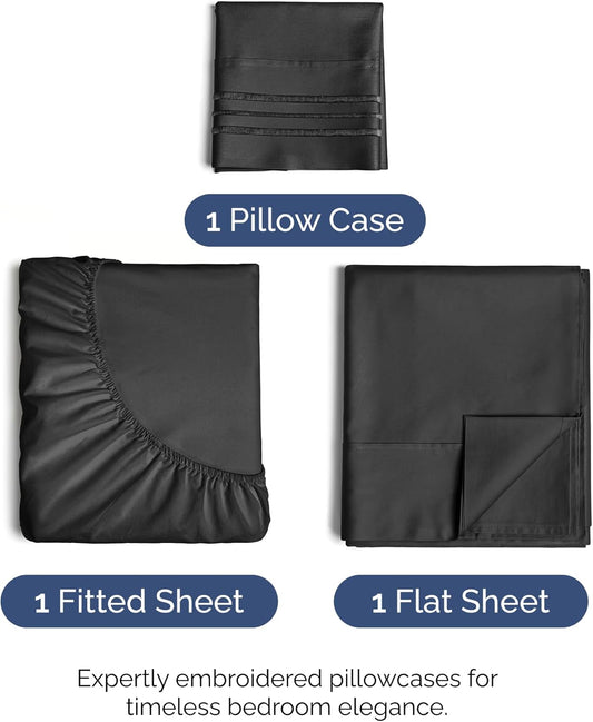 Twin Size 3 Piece Sheet Set - Comfy Breathable & Cooling Bed Sheets Set - Hotel Luxury Bedding for Women, Men, Kids, Teens, Boys & Girls - Deep Pockets, Ultra-Soft and Wrinkle Free - Oeko-Tex - Black