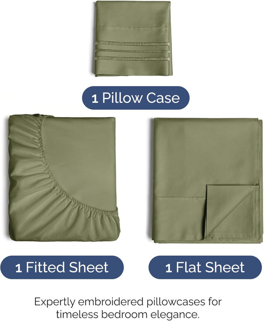 Twin Size 3 Piece Sheet Set - Comfy Breathable & Cooling Bed Sheets Set - Hotel Luxury Bedding for Women, Men, Kids, Teens, Boys & Girls - Deep Pockets, Soft and Wrinkle Free - Oeko-Tex - Sage Green