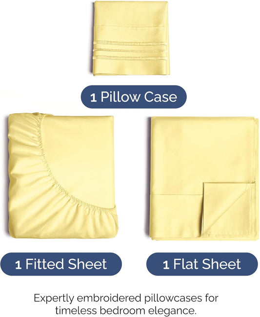 Twin Size 3 Piece Sheet Set - Comfy Breathable & Cooling Bed Sheets Set - Hotel Luxury Bedding for Women, Men, Kids, Teens, Boys & Girls - Deep Pockets, Ultra-Soft, Wrinkle Free - Oeko-Tex - Yellow