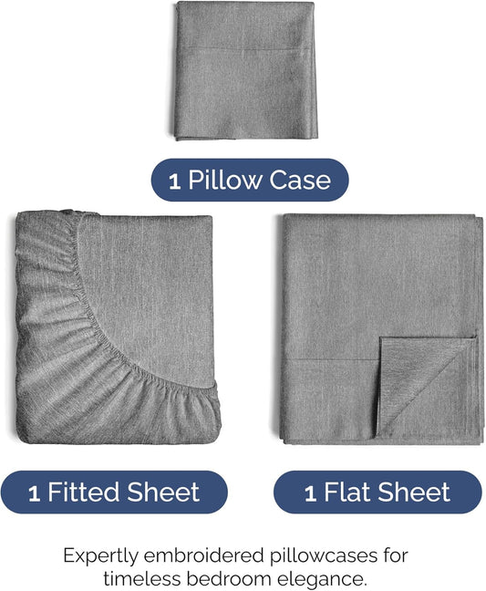 Twin Size 3 Piece Sheet Set - Comfy Breathable & Cooling Bed Sheets Set - Hotel Luxury Bedding for Women, Men, Kids, Teens, Boys & Girls - Deep Pockets, Soft & Wrinkle Free - Grey (Heathered Sheets)