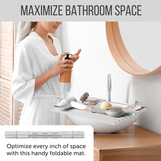 Maplefield Bathroom Sink Cover for Counter Space - Gray, 22 x 2 x 2 Inches - Heat Resistant Silicone Mat - Foldable Vanity Makeup Tray - Space-Saving Sink Cover