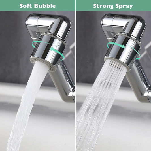 2 Pack 1440° Swivel Faucet Extender(Updated from 1080°),Robotic Arm Faucet Aerator with Female/Male Thread, Faucet Attachment with 2 Water Mode for Kitchen or Bathroom, Plastic Sink Aerator Chrome