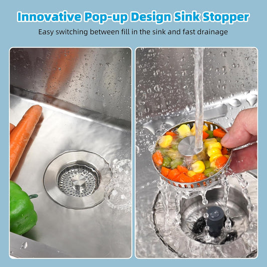 Hibbent All Metal Stainless Steel 3 in 1 Kitchen Sink Drain Strainer, Upgraded Anti-Rust Sink Stop Combo, 3 Anti-Clogging Stainless Steel Baskets with Metal Handle for US Standard 3-1/2" Drain