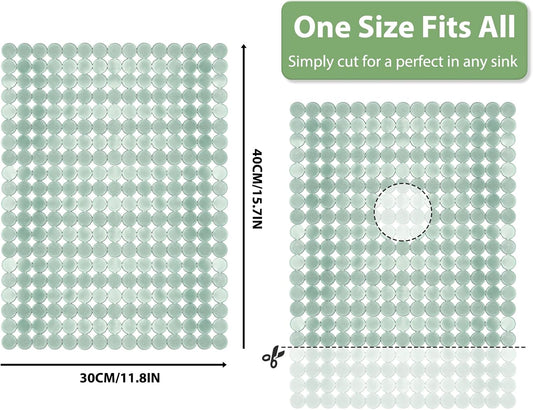 Qulable 2Pack Kitchen Sink Mat for Stainless Steel/Ceramic Sinks, PVC Eco-friendly Protectors for Bottom of Kitchen Sink, Adjustable, Fast Draining, Dots Design, 11.8x15.7 (Green)
