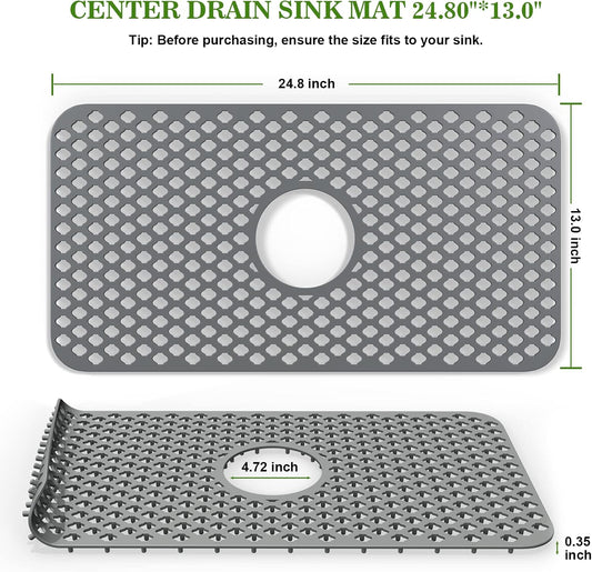 TOOVEM Silicone Sink Mat - Protectors for Kitchen Sink with Center Drain, 24.8''x13'' Kitchen Grid Accessory, Non-Slip Heat-Resistant Mat for Bottom of Farmhouse Porcelain Stainless Steel