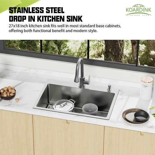 27x18 Inch Kitchen And Bar Sink-Stainless Steel Drop In Kitchen Sink Modern Single Bowl Topmount Bar Sink Come With Silicon Mat,Drain Strainer Set Compatibility With Various Kitchen&Bar Style