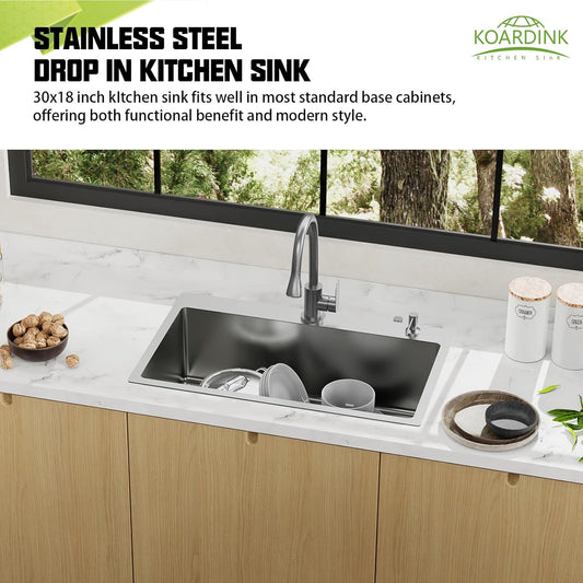 30x22 Inch Stainless Steel Kitchen Sink - Drop In Modern Single Bowl Topmount Kitchen Sink With Silicon Mat,Drain Strainer Set Offering Large Basin And Compatibility With Various Kitchen&Bar Style
