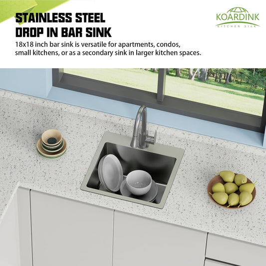 18x18 In Drop In Kitchen And Bar Sink- Stainless Steel Drop In Kitchen Sink Modern Single Bowl Topmount Bar Sink With Silicon Mat,Drain Strainer Set Compatibility With Various Kitchen & Bar Style