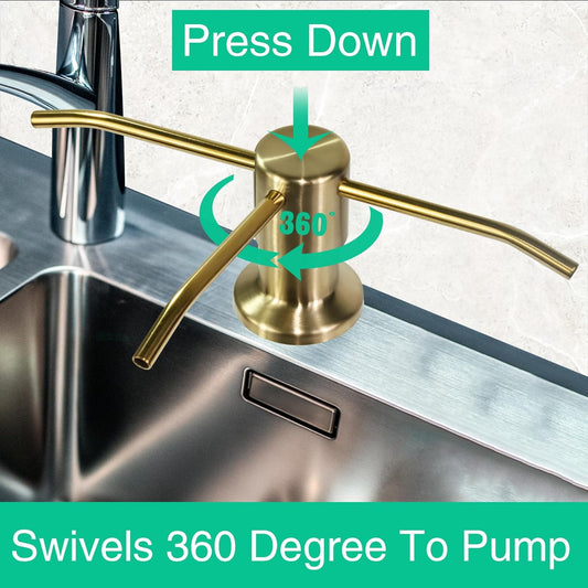 Soap Dispenser for Kitchen Dish Sink Built in Soap Dispenser Pump Gold with 47" Extension Tube Kit