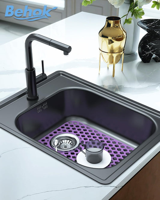 2 Pack Silicone Sink Protector for Kitchen Sink Bathroom, 13.58" x 11.6" Heat-resistant Sink Mat Non-Slip and Durable Silicone Protectors, Rear Drain (Purple)