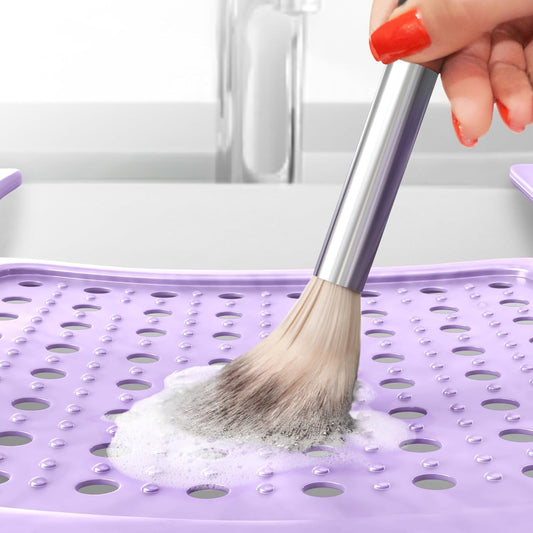 Sink Topper Bathroom Counter Cover & Storage Saver, Foldable Silicone Mat for Hot Tools, Hair Styling & Makeup, Beauty Brush Cleaning Mat, RV Camper Sink Cover & for Small Spaces (Standard Lavender)
