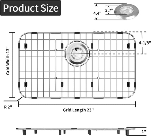 23’’ x 13’’ Stainless Steel Sink Grid, Sink Protectors for Kitchen Sink, Sink Protector with Rear Drain for Single Sink Bowl, Sink Bottom Grid, Sink Grate for Bottom with Sink Strainer