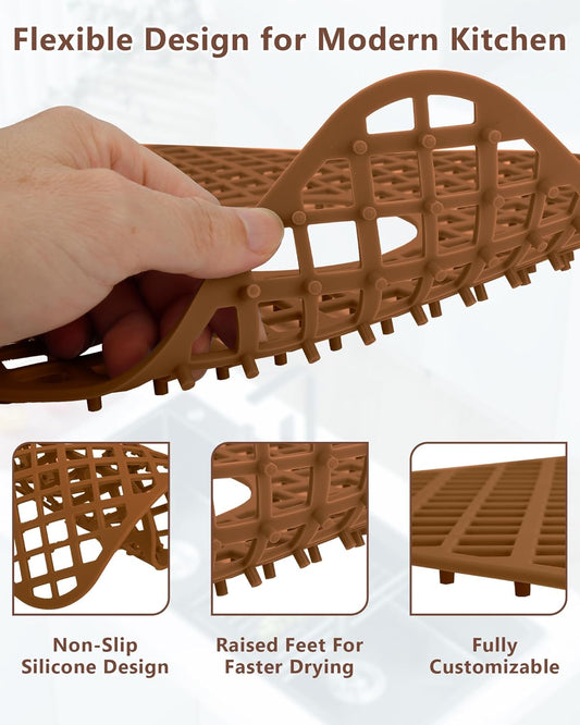 2 Pack Silicone Sink Protector for Kitchen Sink, Lozenge Pattern 13 x 11 inches Sink Grid Mat Silicone Protectors, Center Drain (Coffee)
