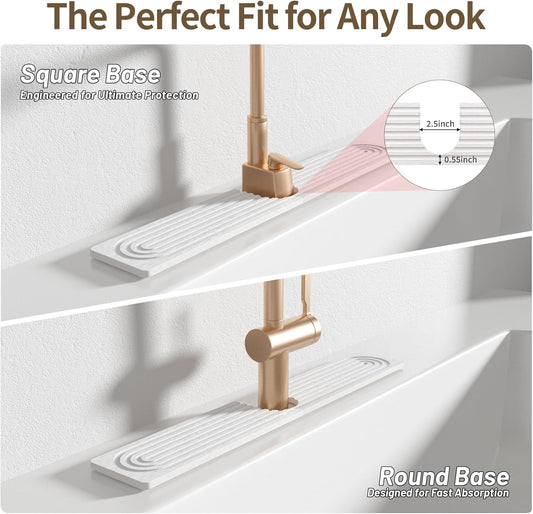 Faucet Mat for Kitchen Sink, Diatomite Stone Drying Sink Protectors, Bathroom Faucet Splash Guard, Quick Dry Water Absorbing, Non-Slip Stone Tray for Kitchen Counter, White, 23.6" x 3.9"