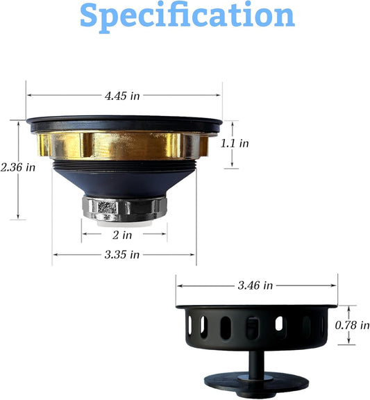 Metal World BS10101MB Post Style Sink Strainer, 3-1/2" Metal Kitchen Strainer, Cast Brass Body Basket Strainer, Strainer with Stainless Steel Basket, Matte Black Finish 1 Pack