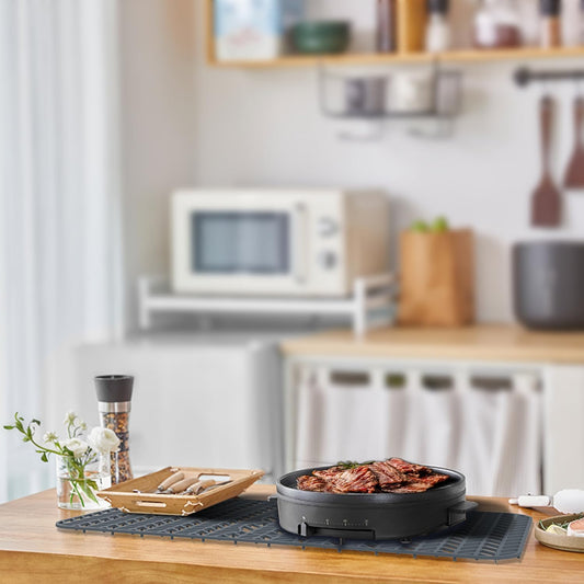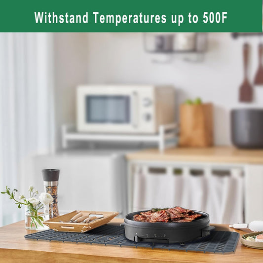 Sink Topper Bathroom Counter Cover & Storage Saver, Foldable Silicone Mat for Hot Tools, Hair Styling & Makeup, Beauty Brush Cleaning Mat, RV Camper Sink Cover & for Small Spaces (Large Silver)