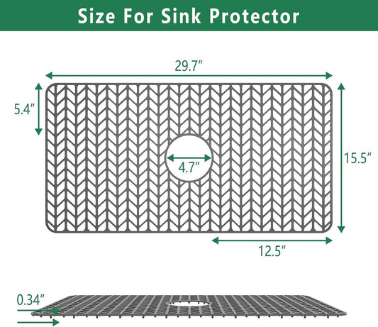 GUUKIN Sink Protectors for Kitchen Mat - 29"x 15.35" Silicone Kitchen Sink Mat Grid for Bottom of Farmhouse Stainless Steel Porcelain with 3 Reserved Holes(Grey)